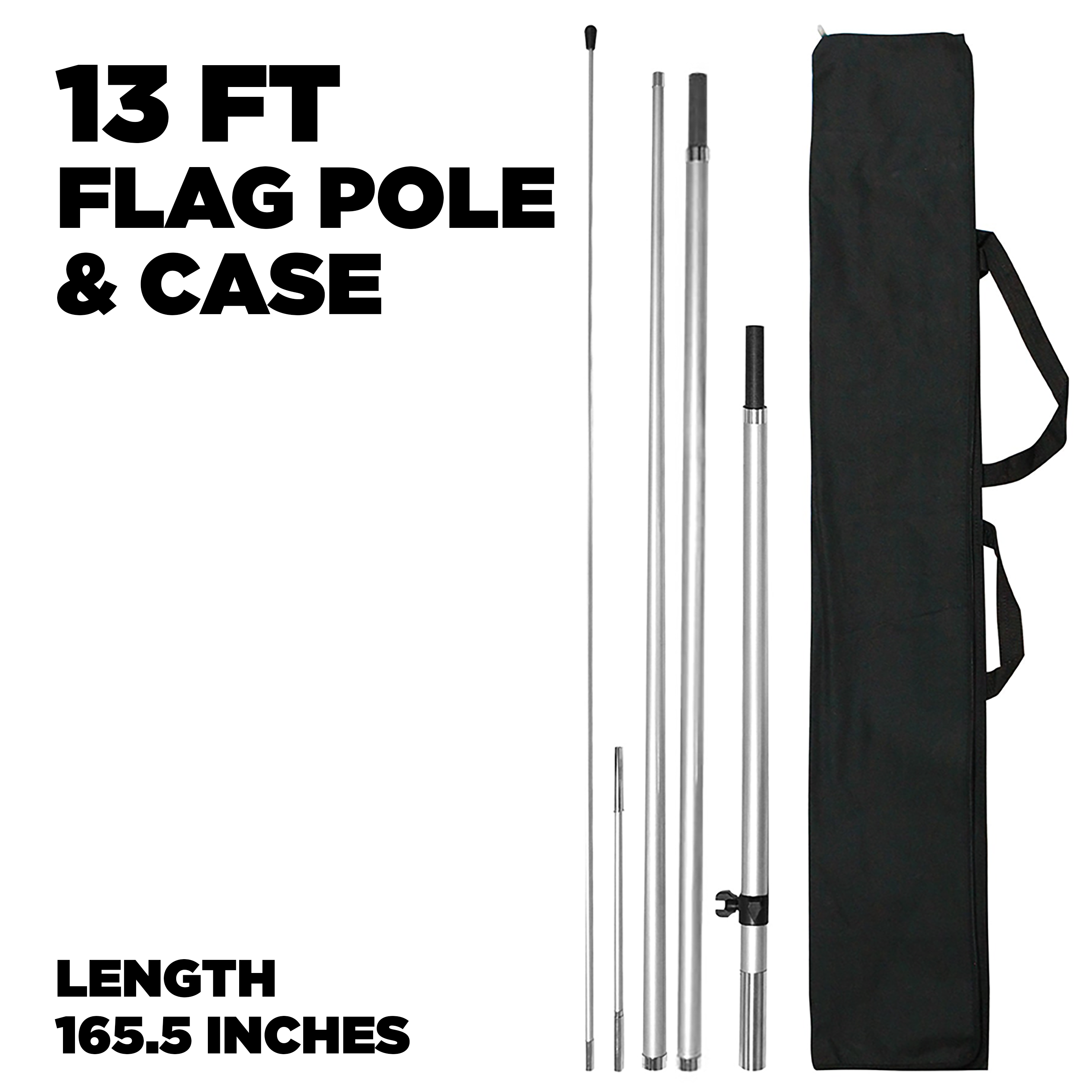 Elevate your outdoor advertising with our 13 ft feather flag pole and case, designed to showcase your feather flags with maximum height and visibility. This feather flag pole kit includes a durable fiberglass feather flag pole and a fitted 13 foot flagpole case, making it ideal for outdoor feather flag displays. Whether you're replacing an old setup or starting fresh, this replacement feather flag pole is compatible with most swooper, teardrop, and feather banner flags. Built for commercial use, the heavy duty flag pole stands up to the elements, offering wind-resistant support for your advertising feather flag. Perfect for business promotions, events, or storefronts, this 13ft flagpole set is a must-have for impactful, eye-catching displays.