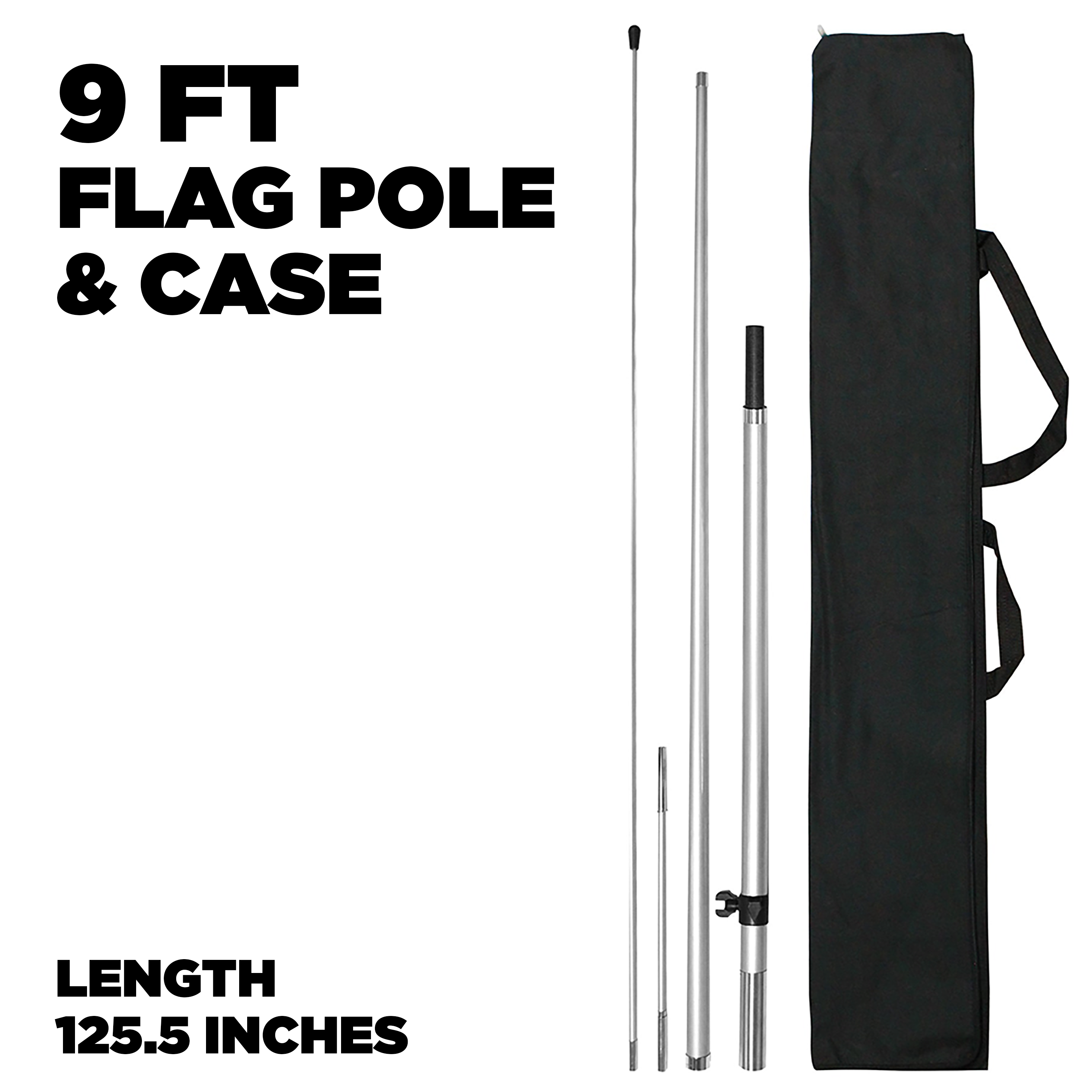 Elevate your outdoor advertising with our 9 ft feather flag pole and case, designed to showcase your feather flags with maximum height and visibility. This feather flag pole kit includes a durable fiberglass feather flag pole and a fitted 9 foot flagpole case, making it ideal for outdoor feather flag displays. Whether you're replacing an old setup or starting fresh, this replacement feather flag pole is compatible with most swooper, teardrop, and feather banner flags. Built for commercial use, the heavy duty flag pole stands up to the elements, offering wind-resistant support for your advertising feather flag. Perfect for business promotions, events, or storefronts, this 9ft flagpole set is a must-have for impactful, eye-catching displays.
