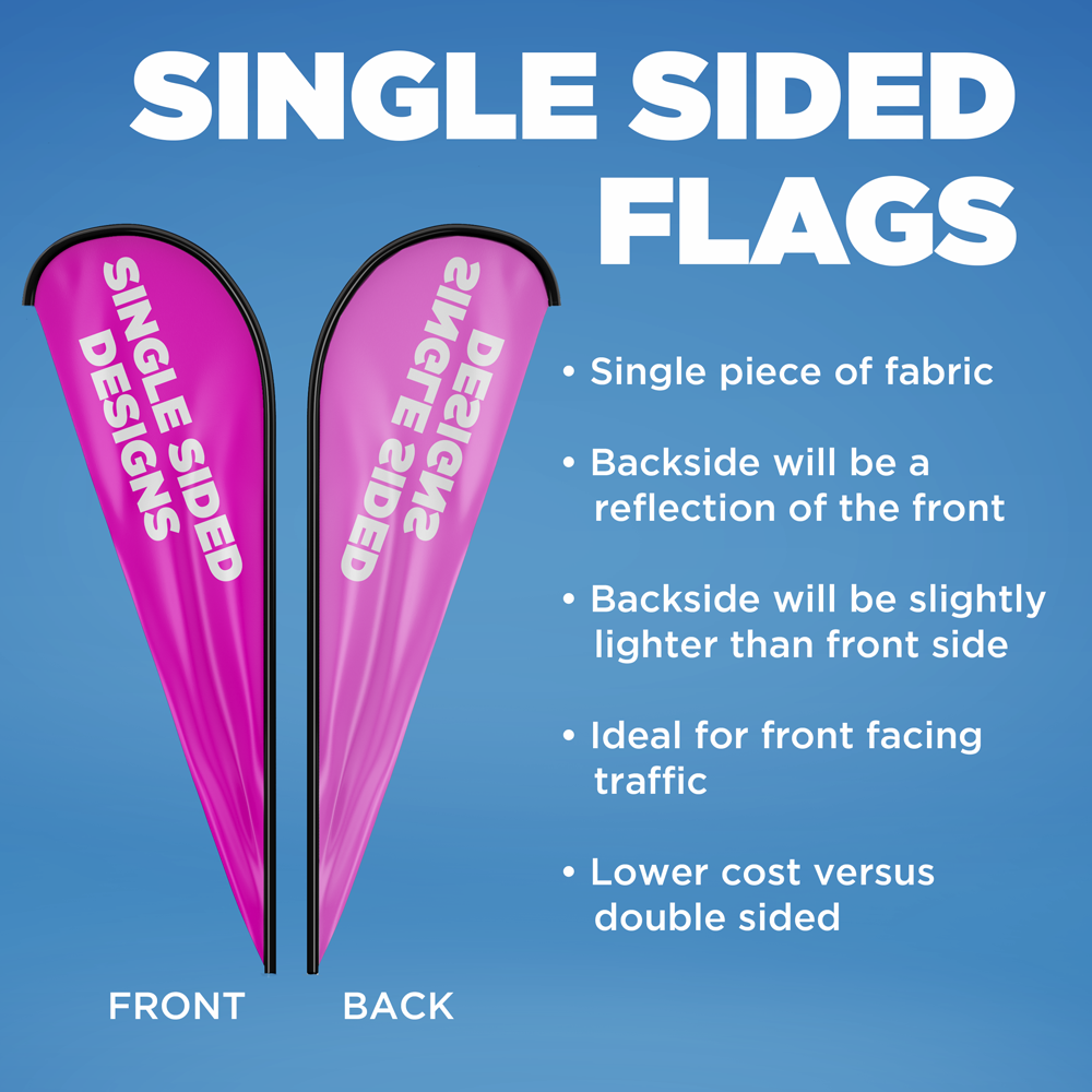 Our Teardrop are an outstanding way to get attention while stylishly complimenting your company or events branding. Available in 8-9ft, 12-13ft and 16ft, they can fit in just about any outdoor or indoor location. Flags are sold individually or you can add a pole and sleeve holder, ground stake/spike, or cross base for use on concrete.